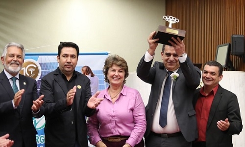 O prefeito Vivaldo Lessa esteve por lá para receber o prêmio.