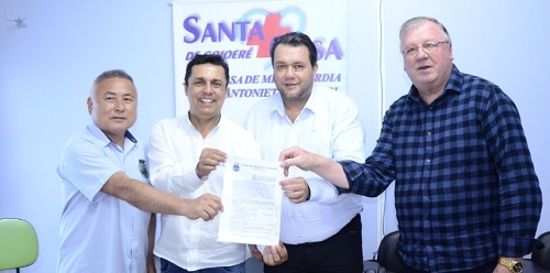O prefeito de Goioerê, Betinho Lima, assinou nesta quinta-feira, convênio de adesão ao programa “Opera Paraná”, da Secretaria de Estado da Saúde. O objetivo é diminuir a fila de cirurgias eletivas gerada pela pandemia. O convênio é através da Santa Casa, que vai receber R$ 360 mil. Os prefeitos Akio Abe (Quarto Centenário) e Ricardo Radomski (Mamborê) também participaram.
