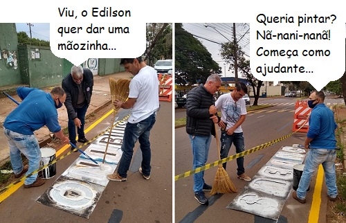 Os clique são de terça-feira, em Campo Mourão. Após a sessão da Câmara, os vereadores Miltinho do Cidade Nova e Edilson Martins acompanharam o pessoal da prefeitura na pintura de sinalização horizontal. O flagra é da av. Goioerê, em frente ao Mercadão.