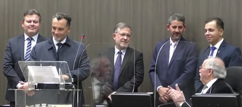 Detalhe: o presidente Jadir Pepita encerrou a sessão solene e passou o comando para o vereador Edilson Martins. Foi Martins, então, quem conduziu o trabalho, que seguiu com transmissão online da Câmara.