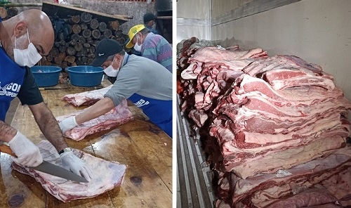 O boi na brasa, prato típico de Luiziana, começou a ser preparado nesta sexta-feira para a festa de domingo. No primeiro dia, foi para o tempero, de onde só sai no sábado para ser recheado e começar a ser assado. O trabalho é coordenado por Márcio Cesar Rosa, com a ajuda de diversas pessoas, entre servidores da prefeitura, do Estado e até vereadores. Estão sendo preparadas duas toneladas de costela para servir três mil pessoas.