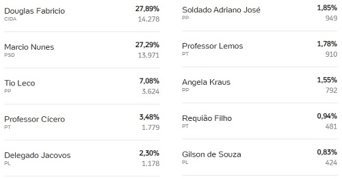 Sargento Fahur foi o terceiro mais votado na cidade (2.965), seguido de Zeca Dirceu (2.644).