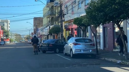 Motoristas seguem estacioando em diagonal no centro de Campo Mourão. Faz tempo que não pode mais. O flagrante é desta segunda-feira, na rua Harrison José Borges.