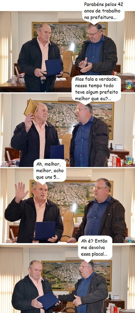 Os cliques são desta terça-feira, em Mamborê, onde a prefeitura homenageou o servidor Emilio Brekailo Korczovei. Ele está se aposentando, depois de 42 anos de trabalho. O prefeito Ricardo Radomski prestigiou o veterano servidor, que recebeu uma placa de agradecimento.