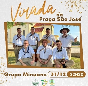 O grupo Minuano vai se apresentar na praça São José, em Campo Mourão, na virada do ano. A festa está prevista para começar às 22h30 do sábado. O anúncio foi feito pela prefeitura através de redes sociais. Só não espere fogos com estampido. Faz tempo que a prefeitura deixou de usá-los e, desta vez, tem lei municipal recentemente aprovada que proíbe se uso. Fogos, somente com efeitos visuais, sem barulho. [