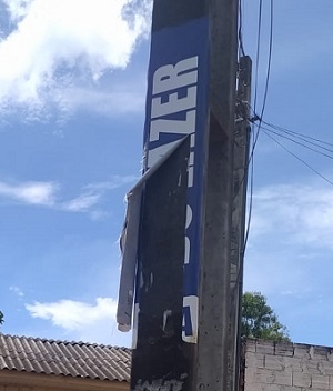 Faz uma semana que foi colocado o adesivo no poste com o nome da rua e já rasgou. O que aconteceu? Fica na Rua do Lazer, no jardim Tropical 2.