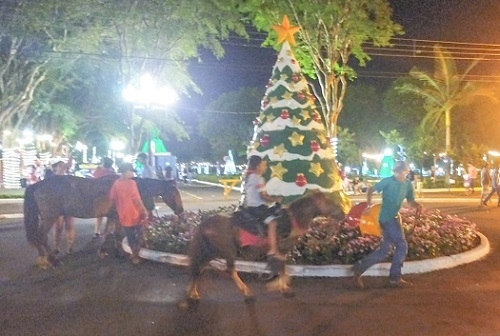 Na chegada do Papai Noel a Campo Mourão, terça-feira, tinha um pessoal alugando uma volta de cavalo pelo centro da cidade.