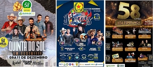 Em Boa Esperança, a festa dos 58 anos começa sábado e inclui shows com Maria Cecília & Rodolfo (domingo) e Jads & Jadson (segunda).