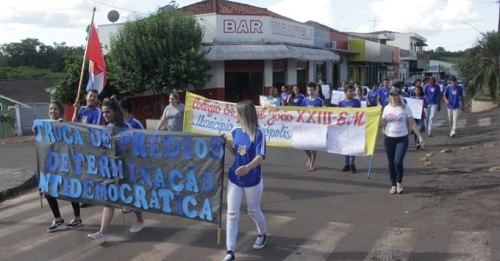 Alunos do ensino médio do colégio João 23, de Janiópolis, saíram às ruas em protesto nesta quarta-feira.