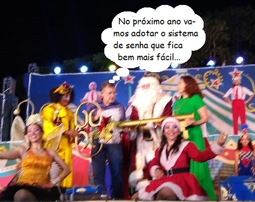 A chegada do Papai Noel a Campo Mourão, terça-feira, incluiu espetáculo da Associação Sou Arte, mas não faltou a tradicional entrega da chave da cidade ao "bom velhinho". O prefeito Tauillo Tezelli repassou a chave gigante junto com a primeira-dama Hosana Tezelli.
