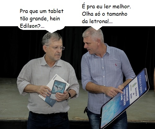 O clic é desta sexta-feira, quando a prefeitura de Campo Mourão entregou tablets para agentes comunitários de saúde. O prefeito Tauillo Tezelli participou, assim como o presidente da Câmara, Edilson Martins. E que fique claro: o tablet gigante que Edilson segura é só para propaganda da ação...