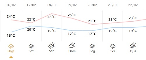 Prepare o guarda-chuva e a galocha. O Simepa está prevendo chuvas praticamente diárias em Campo Mourão pelos próximos 15 dias. Só no próximo domngo que é São Pedro dá uma folga. Portanto, pelo Simepar o feriadão de Carnaval será de chuva. Já o Climatempo prevê 85 mm de chuva para esta sexta-feira, com "folga" no sábado e depois muitos dias de sol e chuva, chuva e sol.