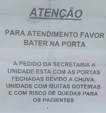 Recado, nesta sexta-feira, no posto de saúde do Cidade Nova.