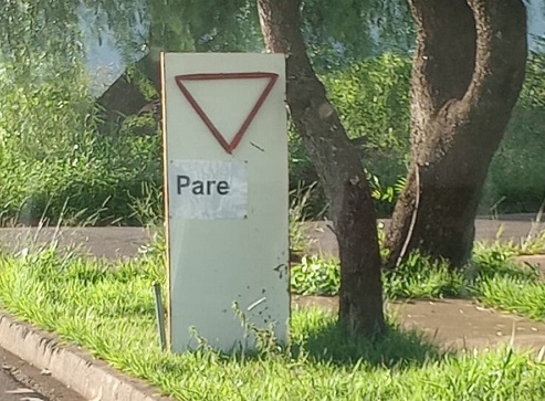 Sinalização improvisada por moradores na av. Vereador Geremias Cilião cruzamento com rua ilha de Marajó, no jardim Albuquerque.