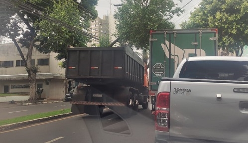 "Desfile de caminhões na av. Manoel Mendes de Camargo, bem ao lado do Paço Municipal. Foi nesta sexta-feira, por volta das 13h45".