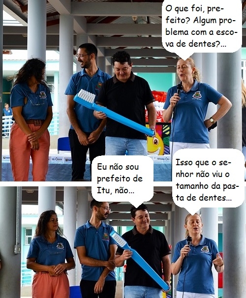 Olha mais cliques de Farol, onde onde aconteceu durante a semana a inauguração do "Escovódromo". Trata-se de programa voltado às crianças para o incentivo aos cuidados com a higiene bucal. O prefeito Oclécio Meneses participou e teve de segurar a escova de dentes gigante...