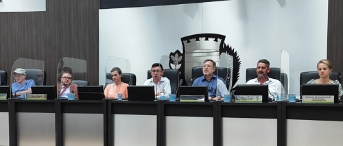 Vereadores: Bina Teixeira, Edilson Martins, Elvira Schen, Escrivão Parma, Marcio Berbet, Naiany Salvadori e Toninho Machado.