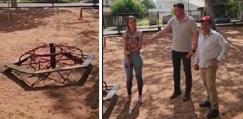Leandro de Oliveira, prefeito de Araruna, sobre de vandalismo em parquinho no centro da cidade, que tem brinquedos quebrados por adultos. Ele disse que levará o caso para a polícia; em vídeo postado em redes sociais.