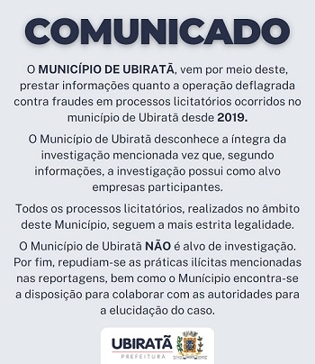 A prefeitura de Ubiratã divulgou em nota que não é alvo de investigação (e sim as empresas). Diz que suas licitações são dentro da legalidade e que repudia as práticas citadas nas investigações (veja acima).