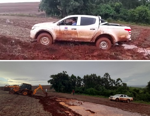 A chuvarada da última a sexta-feira não perdoou nem o ex-prefeito de Campina da Lagoa, Celso Ferreira. Atual secretário municipal de Obras e Serviços Públicos, ele estava na zona rural - região do Coxa Branca - quando despencou água e a camionetona da prefeitura ficou encalhada. Foi preciso um trator para puxar o veículo. Segundo Ferreira, choveu cerca de 70 milímetros em menos de uma hora.