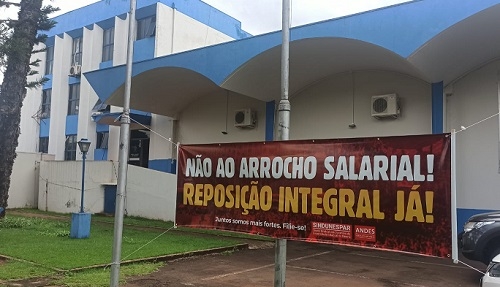 A quarta-feira foi dia de paralisação de professores e técnicos da Unespar, incluindo o câmpus de Campo Mourão. Motivo? O não pagamento da reposição das perdas inflacionárias dos últimos sete anos. A categoria alega que, neste período, já perdeu o equivalente a 11 salários integrais. O índice de inflação acumulada está em cerca de 42%. A data-base é maio, definida por lei, mas não é cumprida desde 2015.