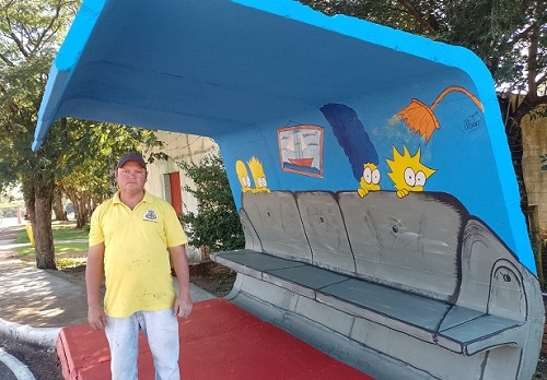 Um abrigo de ponto de ônibus vem chamando a atenção em Farol. O banco dos usuários simula o sofá da abertura do desenho Os Simpsons. A pintura foi criatividade do servidor municipal José Anderson Clemba. Concursado desde 2004, ele também iniciou a pintura de um segundo abrigo. E já está certo que fará o mesmo no distrito de Martinópolis. “Eu sempre desenhei e pintei, me sinto realizado fazendo pela cidade. A criatividade vem a cada trabalho”, explicou.