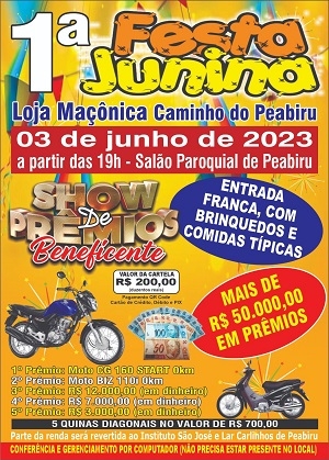 A loja maçônica Caminho do Peabiru vai realizar a 1ª Festa Junina.