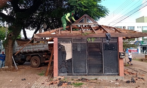 Foi iniciada na manhã desta segunda-feira a demolição do quiosquesque por mais de 30 anos abrigou a Banca do Plínio. Era a última banca de jornais e revistas de Campo Mourão. Estava lá desde que o calçadão foi inaugurado, em 1991. A banca, antes, funcionava ao lado da rodoviária (hoje Estação da Luz). O quiosque em frente ao Museu Municipal nem foi para licitação.