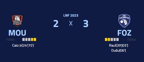 Campo Mourão perdeu para o Foz Cataratas por 3 a 2, nesta segunda-feira, no Ginasião, pela Liga Nacional de Futsal.
