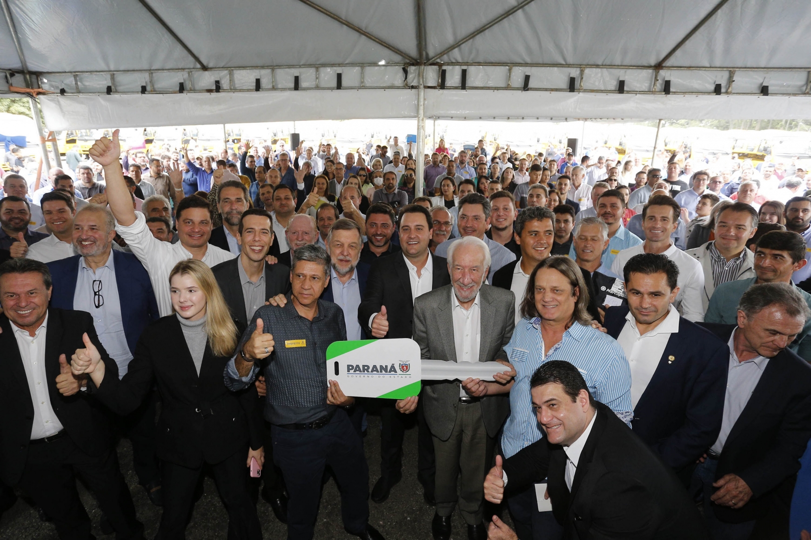 O governador Ratinho Jr entregou nesta segunda-feira, 144 ônibus escolares a 121 municípios, sendo quatro da região. A entrega aconteceu em cerimônia na Academia Policial Militar do Guatupê, em São José dos Pinhais. Foram investidos R$ 48,8 milhões para a aquisição dos veículos, com recursos de emendas parlamentares destinados através do FNDE. O deputado Márcio Nunes participou do evento.