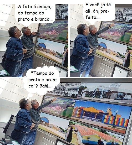 Os cliques são desta quinta-feira, quando o prefeito Tauillo Tezelli esteve na Câmara de Campo Mourão. No gabinete do vereador Edilson Martins, conferiu as fotos de um painel. Uma delas, em frente à antiga sede da Câmara, no mesmo endereço, Tauillo já estava presente. Ele era vice-prefeito (93/96) quando o legislativo deixou o Paço Municipal e foi para a esquina da rua Francisco Albuquerque.