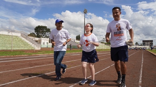 Acontece nesta quarta e quinta-feira o 24.o Festival de Atletismo de Campo Mourão. O medalhista olímpico Vanderlei Cordeiro de Lima participou da abertura. E olha só o que ele fez. Se ofereceu para correr ao lado de Júlia Zanqueta dos Santos, que é deficiente visual. Com 10 anos, a aluna do Integrado participa do festival, que reúne estudantes de 8 a 17 anos.