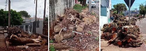 Vão-se as árvores, ficam os tocos... nas calçadas! É complicada a vida dos pedestres em Campo Mourão.