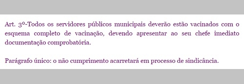 O texto traz novas medidas de enfrentamento à covid-19 e inclui a vacina obrigatória no artigo terceiro.