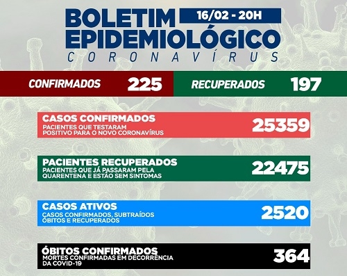 Mais duas mortes por covid-19 foram confirmadas nesta quarta-feira em Campo Mourão. Foi um homem de 81 e outro de 66 anos. Os casos confirmados no dia foram 225, com 197 recuperados. Com isso, os casos ativos subiram um pouco - 2.520. Na ala covid a taxa de ocupação de leitos do SUS está em 125% na enfermaria e 50% na UTI.