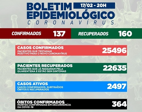 Campo Mourão confirmou 137 novos casos de covid-19 nesta quinta-feira. É o menor número do mês. Os recuperados foram 171 e os casos ativos ficaram em 2.497. A ala covid está com 137% de taxa de ocupação de leitos do SUS na enfermaria e de 50% na unidade de terapaia intensiva. Dos seis internados na UTI, cinco são de Campo Mourão.