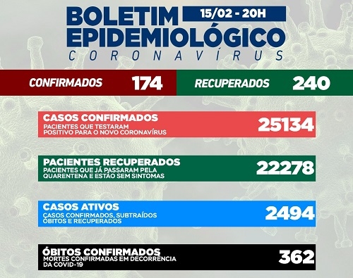 Campo Mourão teve 174 casos de covid-19 confirmados nesta terça-feira. Os recuperados foram 240. Com isso, o número de casos ativos caiu para 2.494. As confirmações desta segunda foram as menores em uma semana. Na terça-feira anterior houve o recorde de 400 casos num dia. Na ala covid o índice de ocupação de leitos do SUS está em 137% na enfermaria e 50% na UTI.