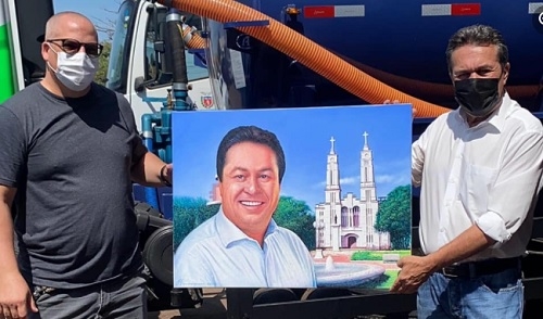 Quem disse que é só o "recepcionista oficial" Magnum Alves que presenteia políticos com desenhos que ele mesmo faz? Neste domingo, em Campo Mourão, o secretário de Estado Márcio Nunes (Desenvolvimento Sustentável e Turismo) recebeu uma pintura de Carlos Enrique Alvarez Delgado. "Trabalho fantástico", agradeceu Nunes em redes sociais.