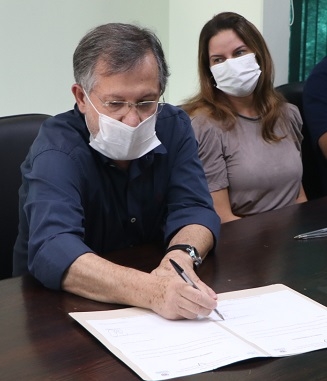 O prefeito Tauillo Tezelli assinou nesta terça-feira o termo de compromisso com o governo do Estado.