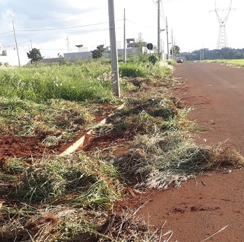 "Roçar, alguém roçou. Mas na rua o mato jogou. Av. Dr. Eugenio Lapezak, esquina com rua Cesar Alexandre Nunes, Residencial Parque do Lago".