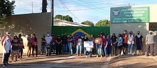 Teve protesto, nesta quarta-feira, de professores do colégio estadual cívico-militar da Vila Guaíra, em Goioerê. Motivo? A destituição do diretor geral Adenildo de Brito. Houve concentração em frente à escola em apoio ao agora ex-diretor. "Queremos justiça. Nosso diretor precisa voltar. Adenilson, estamos com você", destacava um cartaz.