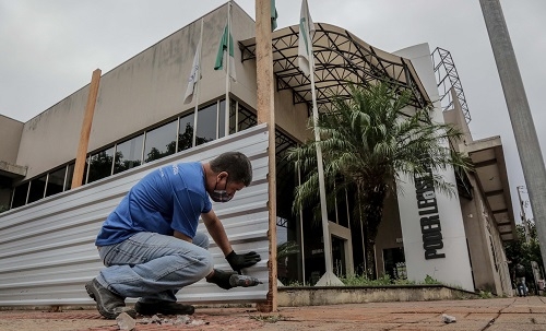A Câmara de Campo Mourão ficará cerca por tapume pelos próximos dias. É que as reformas, que estão sendo iniciadas, incluem melhorias nas marquises, que apresentam rachaduras. O tapume é por questão de segurança. As reformas foram licitadas por R$ 270 mil e incluem melhorias no telhado, que apresenta infiltrações. O prédio da Câmara foi inaugurado em 2012.