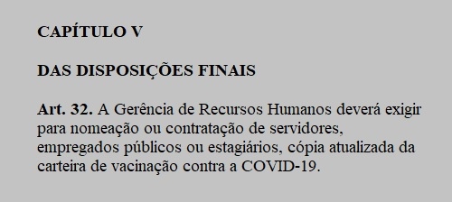 A Gerência de RH exigirá "cópia atualizada da carteira de vacinação contra a covid-19".