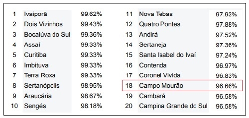 18) Campo Mourão 96.66%