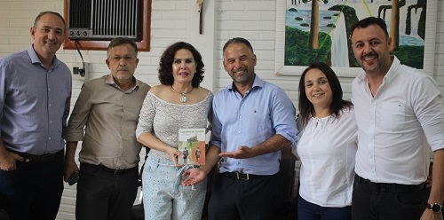 A foto é de Peabiru, nesta sexta-feira à tarde. O prefeito Júlio Frare recebeu a visita dos colegas Tauillo Tezelli (Campo Mourão) e Leandro Oliveira (Araruna - presidente da Comcam). O historiador Arléto Rocha aproveitou para entregar o seu livro sobre os Caminhos de Peabiru. Também estão no clic as primeiras-damas de Campo Mourão (Hosana) e Peabiru (Izabel Cristina).