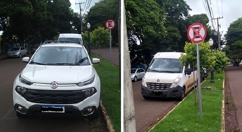 Motoristas continuam estacionando junto ao canteiro central da av. Irmãos Pereira, mesmo com a sinalização dizendo que não pode. A cnea é comum principalmente no horário do almoço.