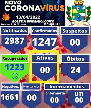 Com a redução dos casos de covid-19, parte das prefeituras da região parou de atualizar os boletins. Algumas ainda o fazem diariamente, outras de vez em quando. Campo Mourão ficou de fazer todo quinta-feira, mas "falhou" esta semana. Janiópolis mostrou na quarta-feira que zerou os casos ativos.