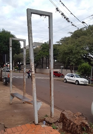 Olha a situação do ponto de ônibus da av. Irmãos Pereira, centro de Campo Mourão. Foto: QITV