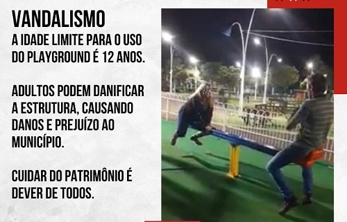 Olha a postagem feita nas redes sociais da prefeitura de Roncador. O município recebeu a denúncia de uso indevido do parquinho da praça central. Por uso indevido leia-se adultos nos brinquedos. A postagem lembra que só crianças até 12 anos podem usar o playground e que o local é monitorado por câmeras. Denúncias devem ser feitas pelo número (44) 9 9904-2126.