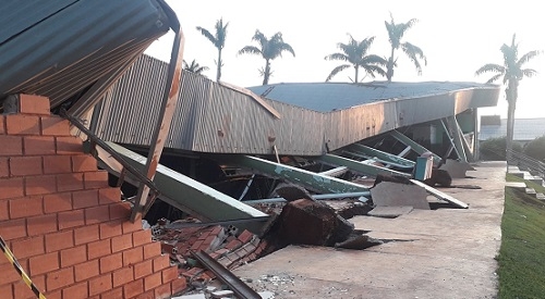 Na cidade, o telhado do ginásio de esportes 16 de Dezembro desabou.